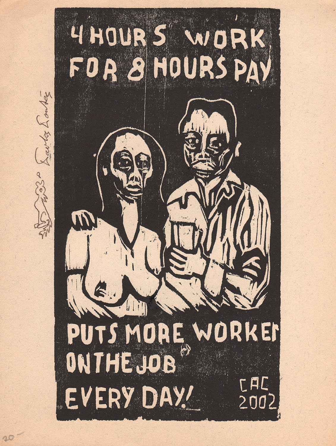 4 Hours Work for 8 Hours Pay Puts More Workers on the Job Every Day! (¡4 horas de trabajo por 8 horas de paga pone todos los días a más trabajadores en el trabajo!), 2002