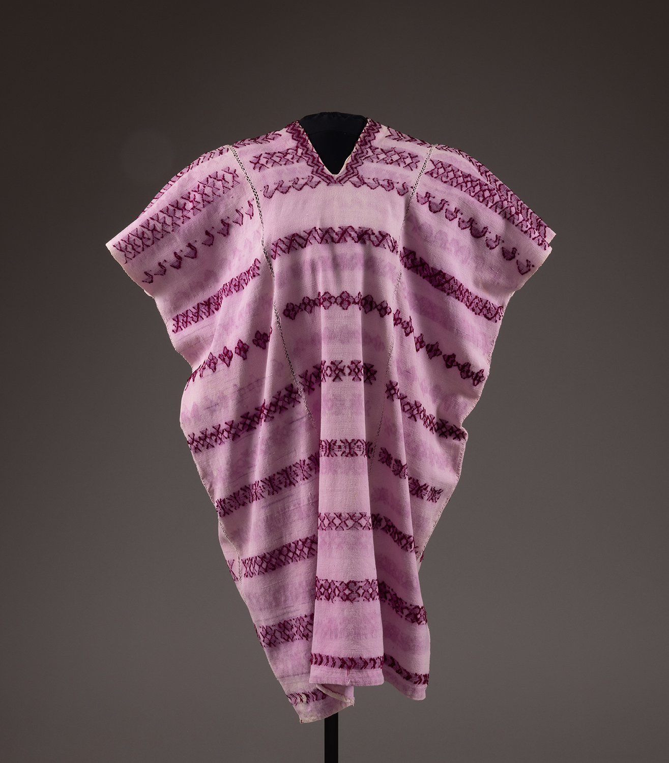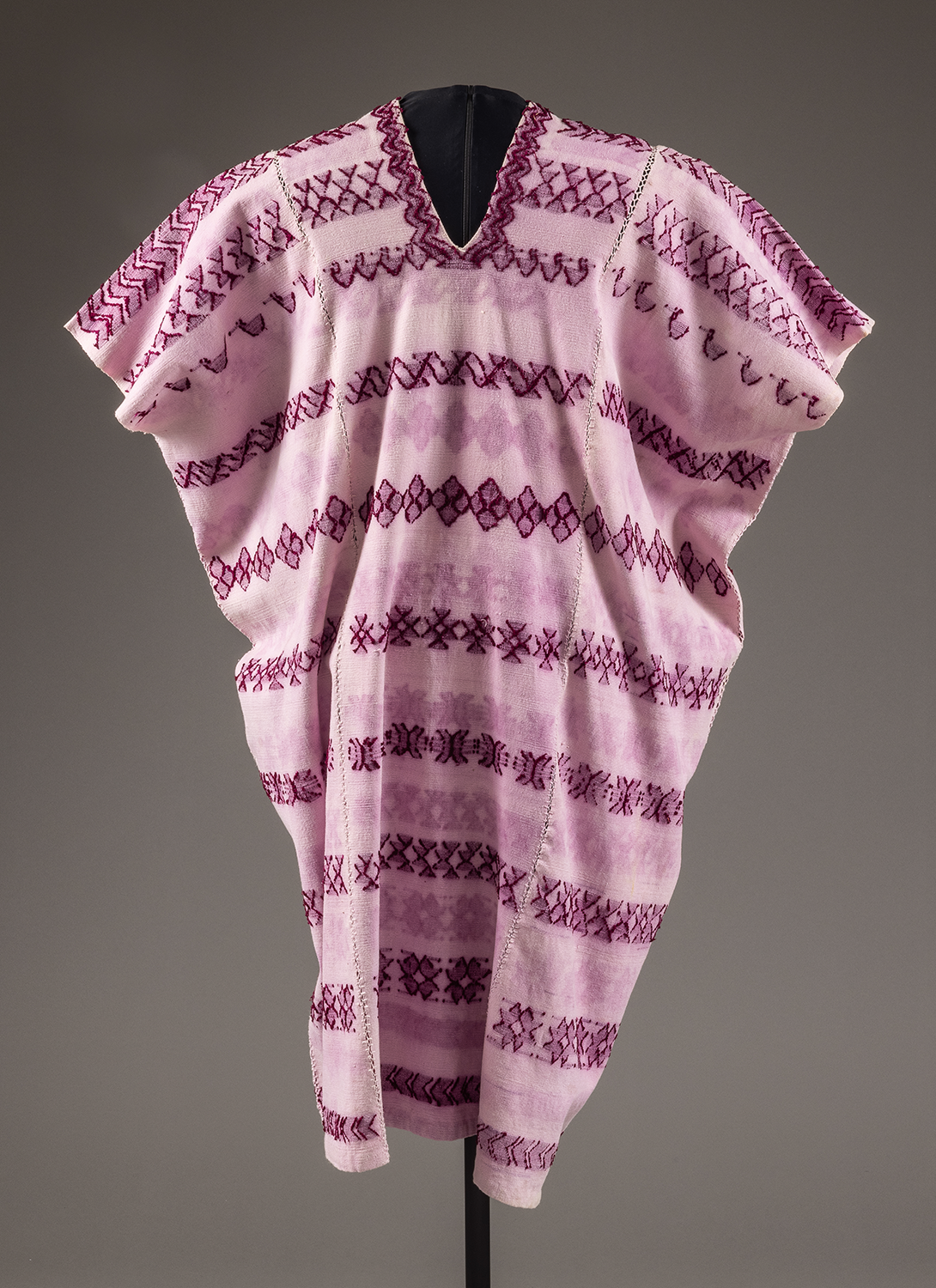 back strap loomed snail dyed cotton in three lengths hand stitched together / algodón teñido con caracol púrpura trabajado en tres partes en telar manual y cosidos a mano