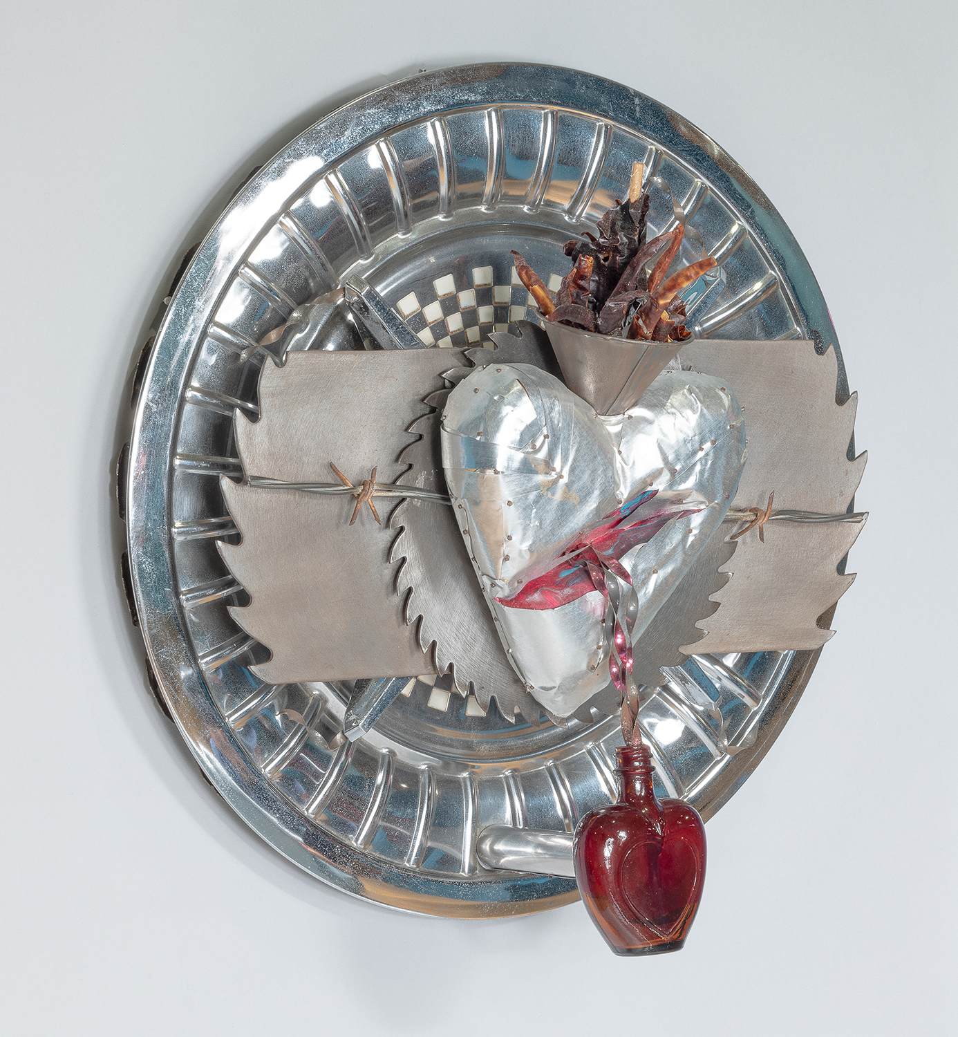 hubcap and mixed media / llanta tapacubos y técnica mixta